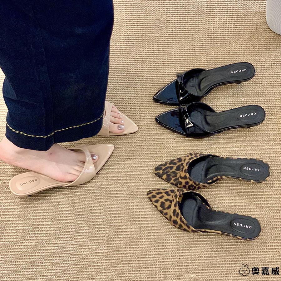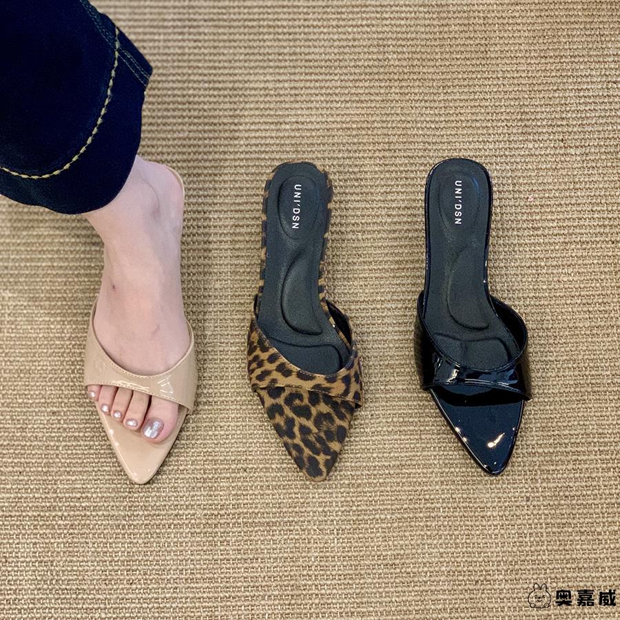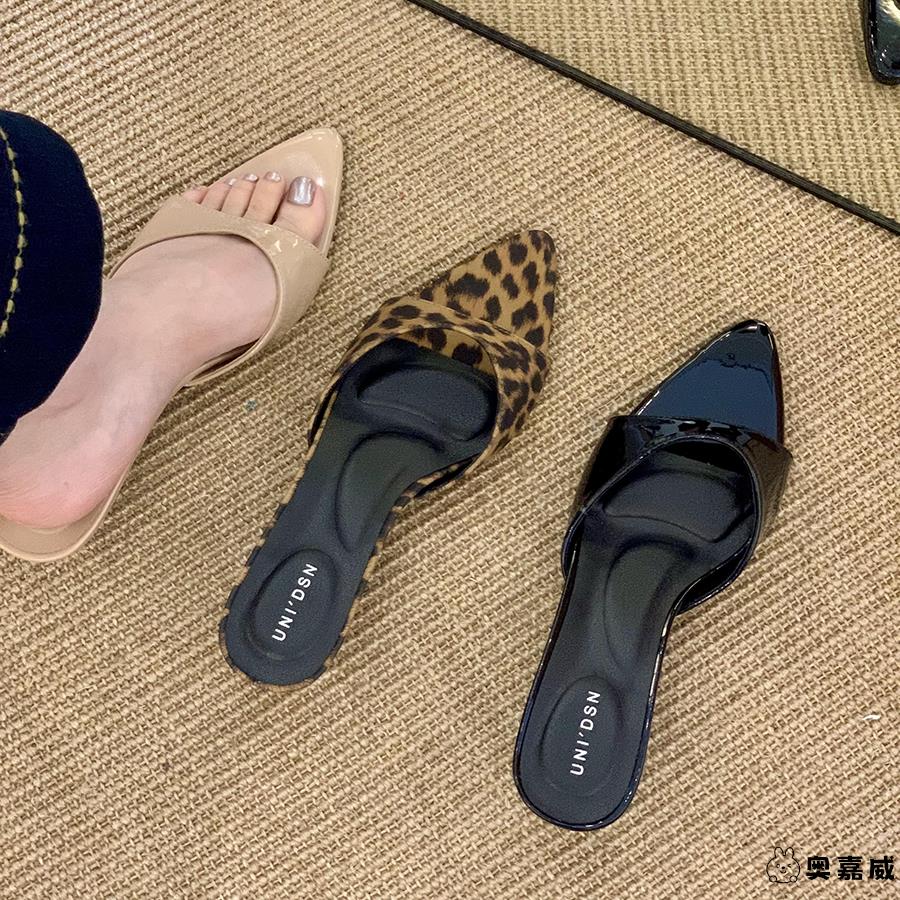 凉拖鞋 小众配裙子尖头凉鞋 仙女鞋 秋季 子外穿2025新款 高跟豹纹法式