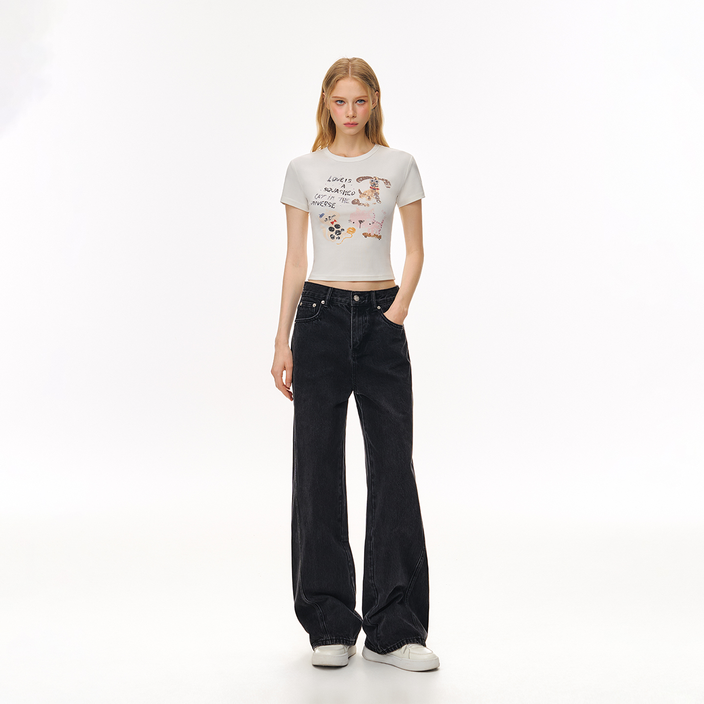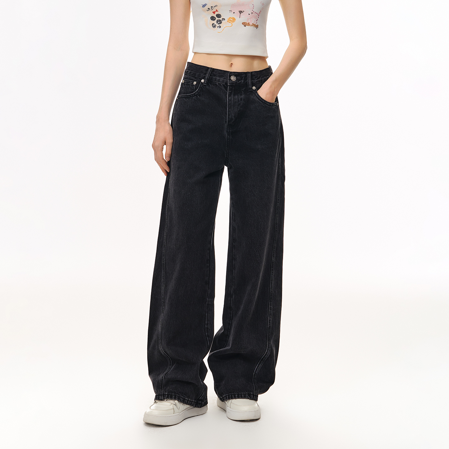 女冬季 复古垂坠渐变直筒阔腿牛仔裤 40933287 建模裤 艾诺丝雅诗