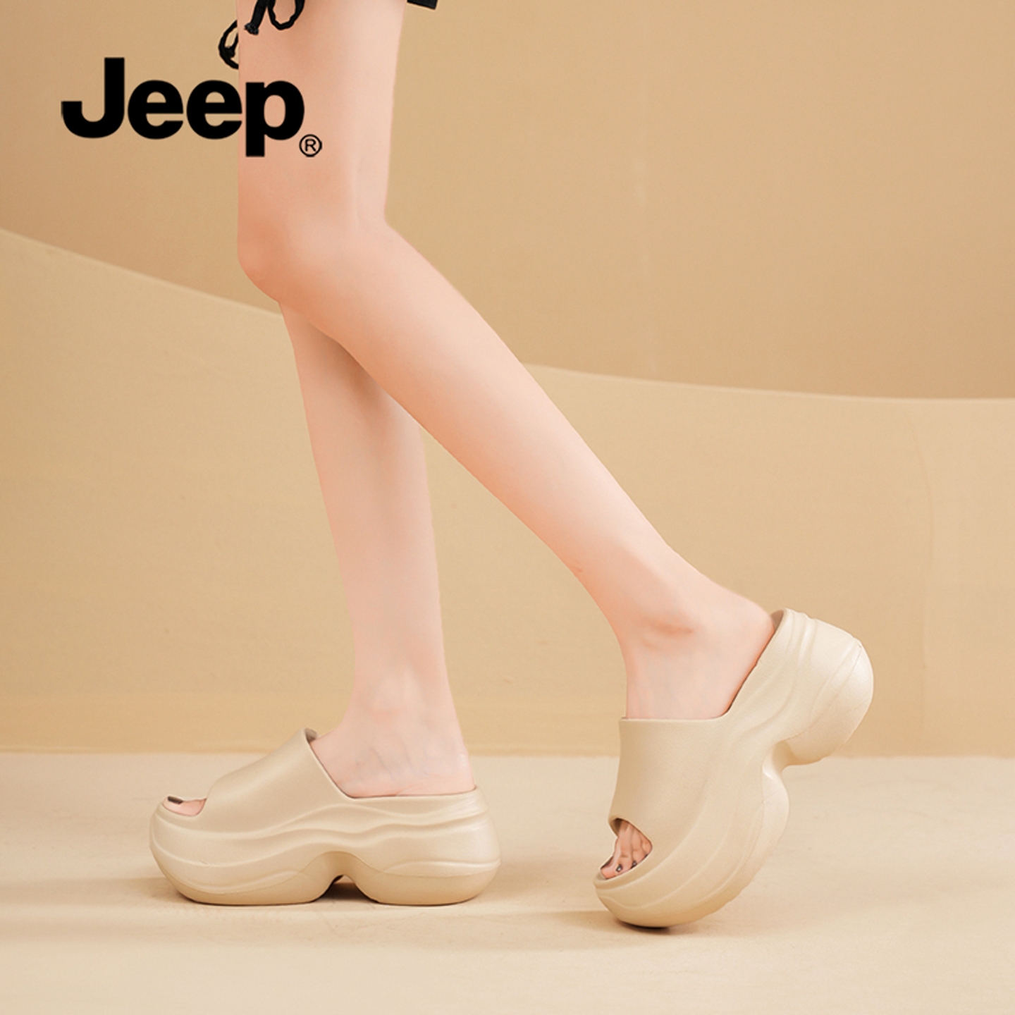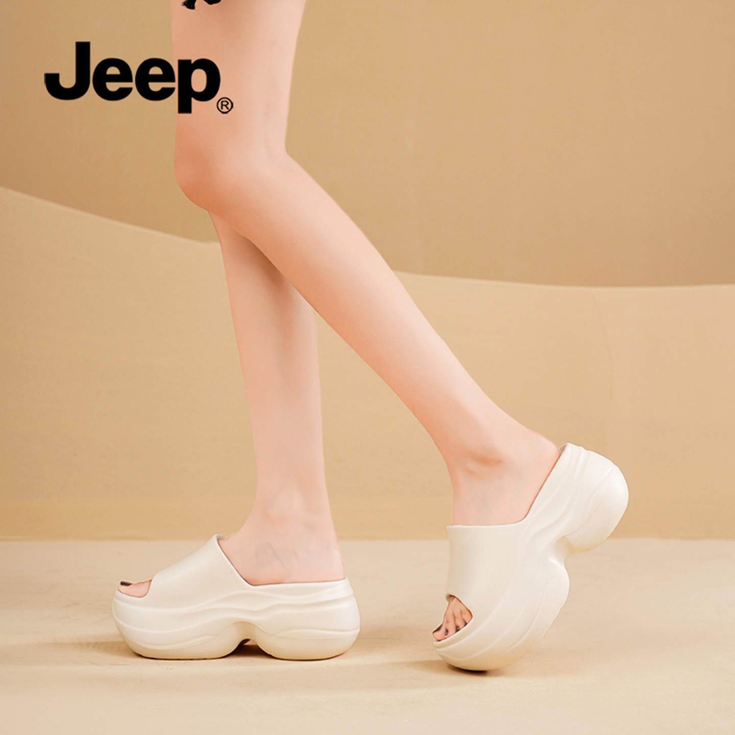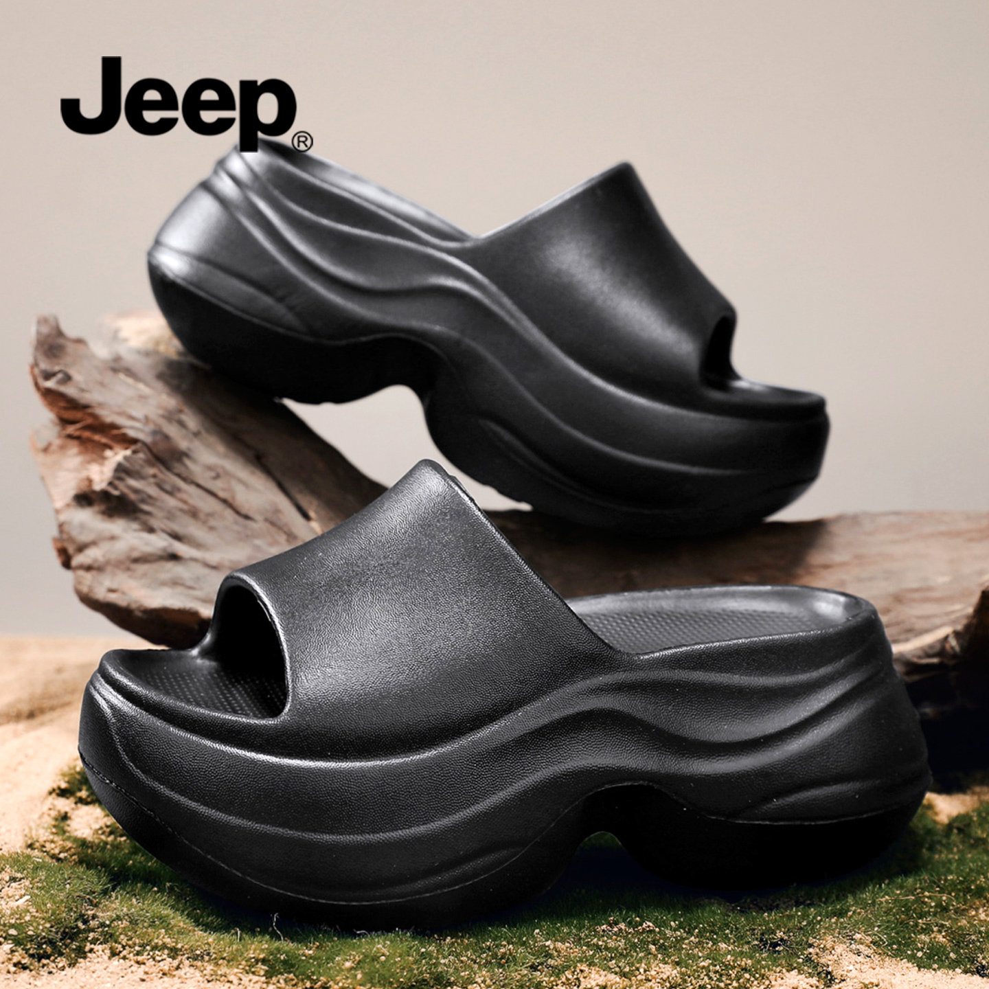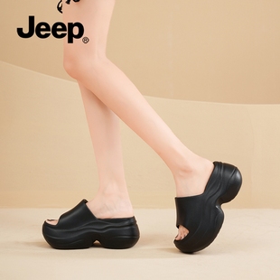 黑色坡跟沙滩凉拖鞋 厚底增高一字拖女款 女夏外穿2025新款 JEEP拖鞋