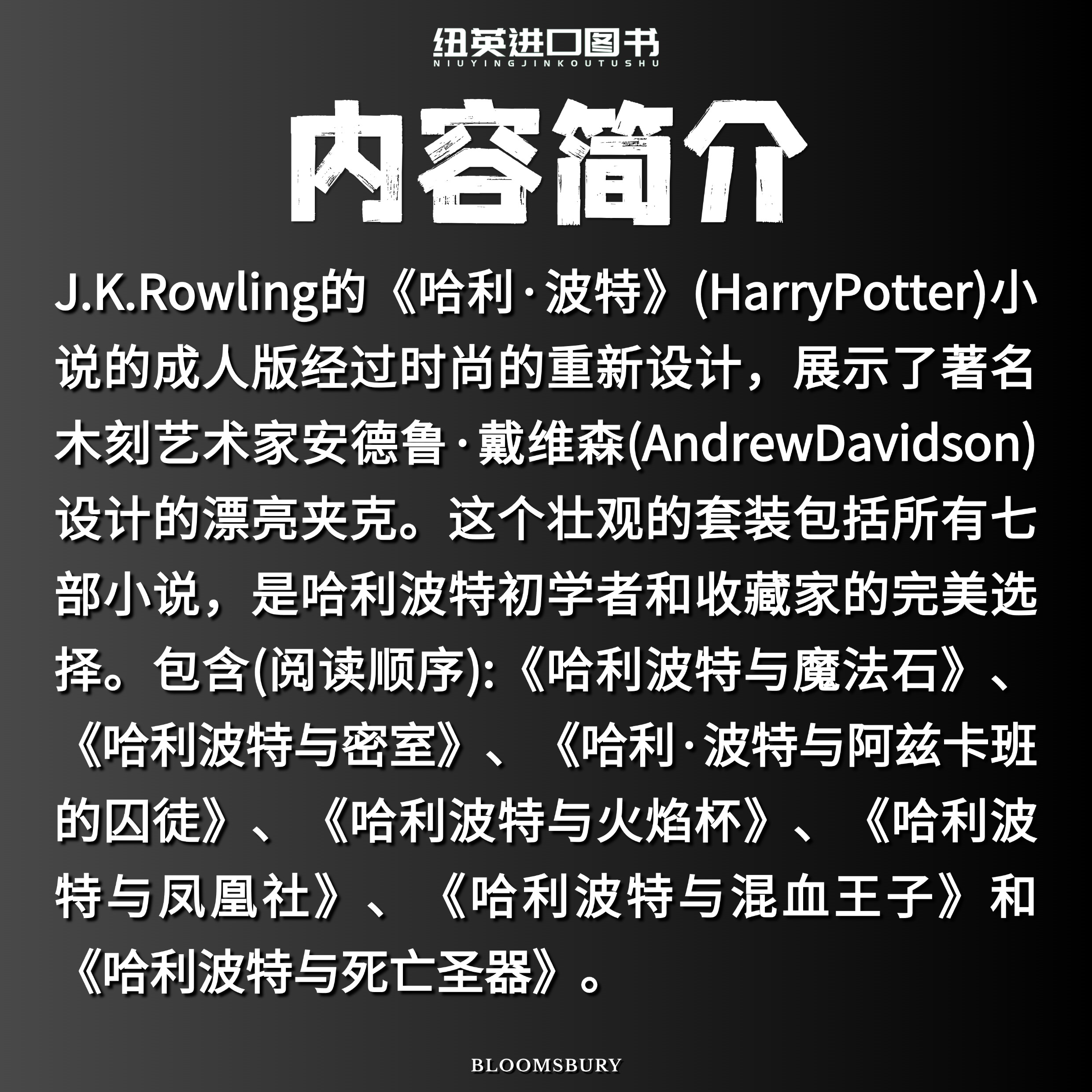 Set Rowling 英语原版 Harry Potter 英文原版 成人版 哈利波特书全套 哈利波特1 Boxed 7册套装