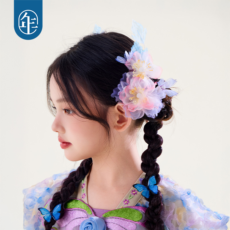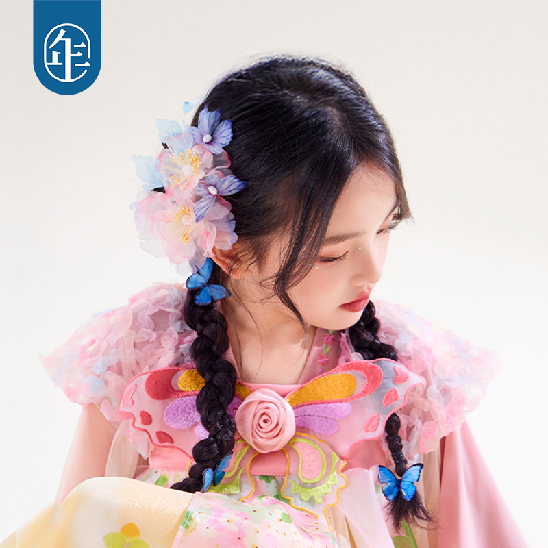 中式 新款 年衣儿童发饰发夹秋季 国风超仙女孩头饰 花鼓隆咚发卡