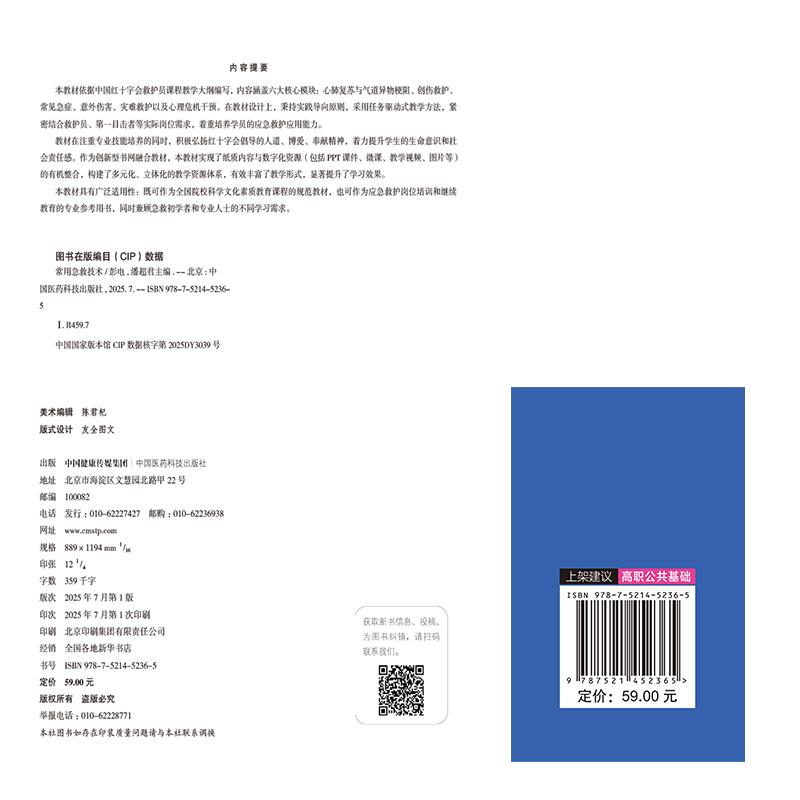 彭电 供医药类各专业使用 潘超君 中国医药科技出版 9787521452365 常用急救技术 社 医药高等职业教育公共基础课程规划教材