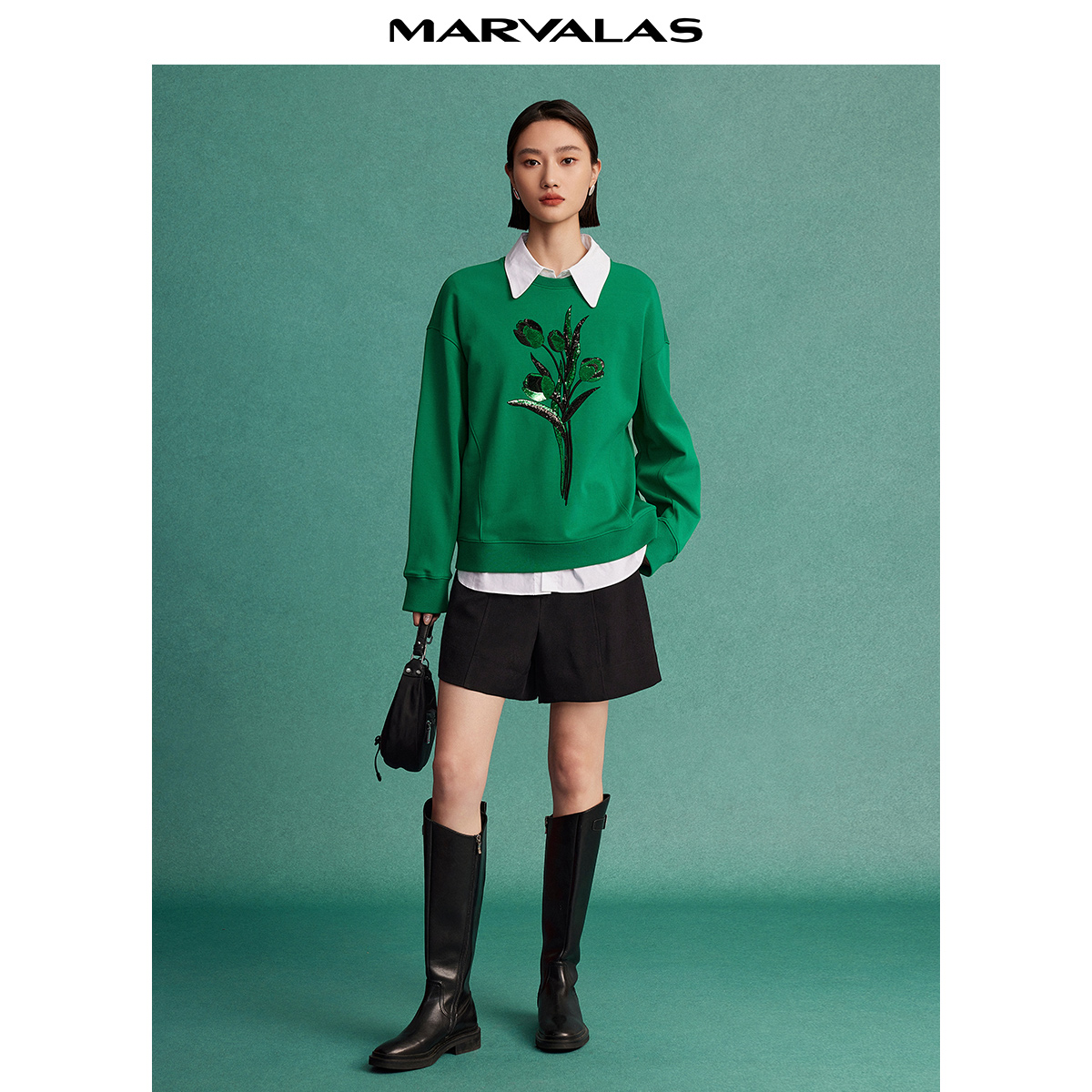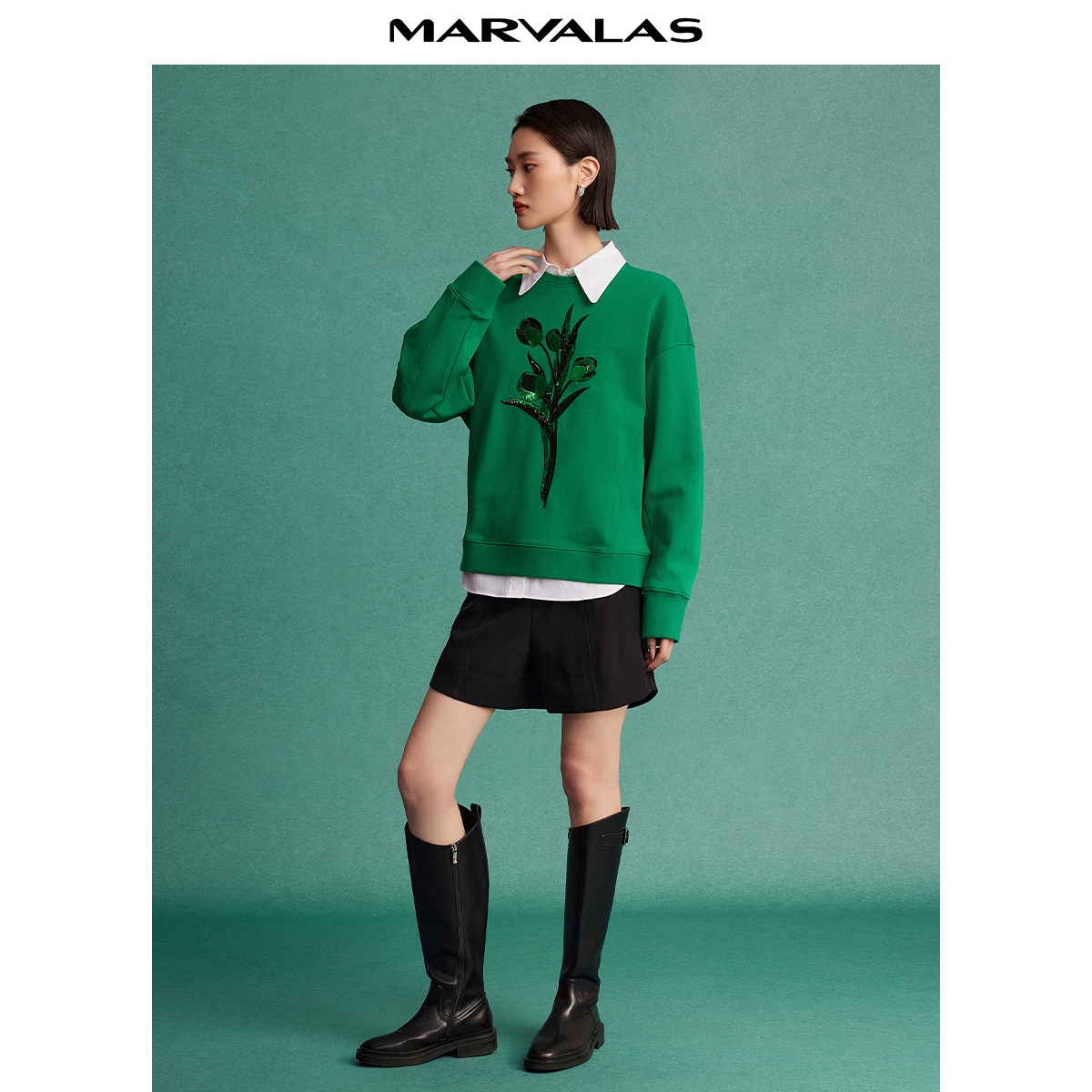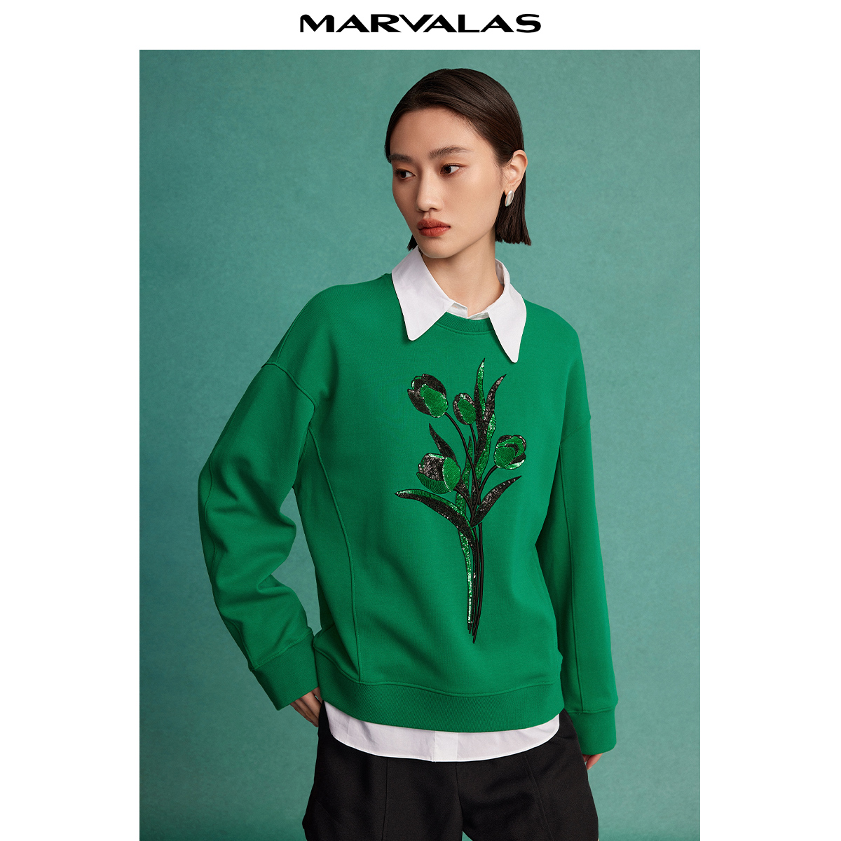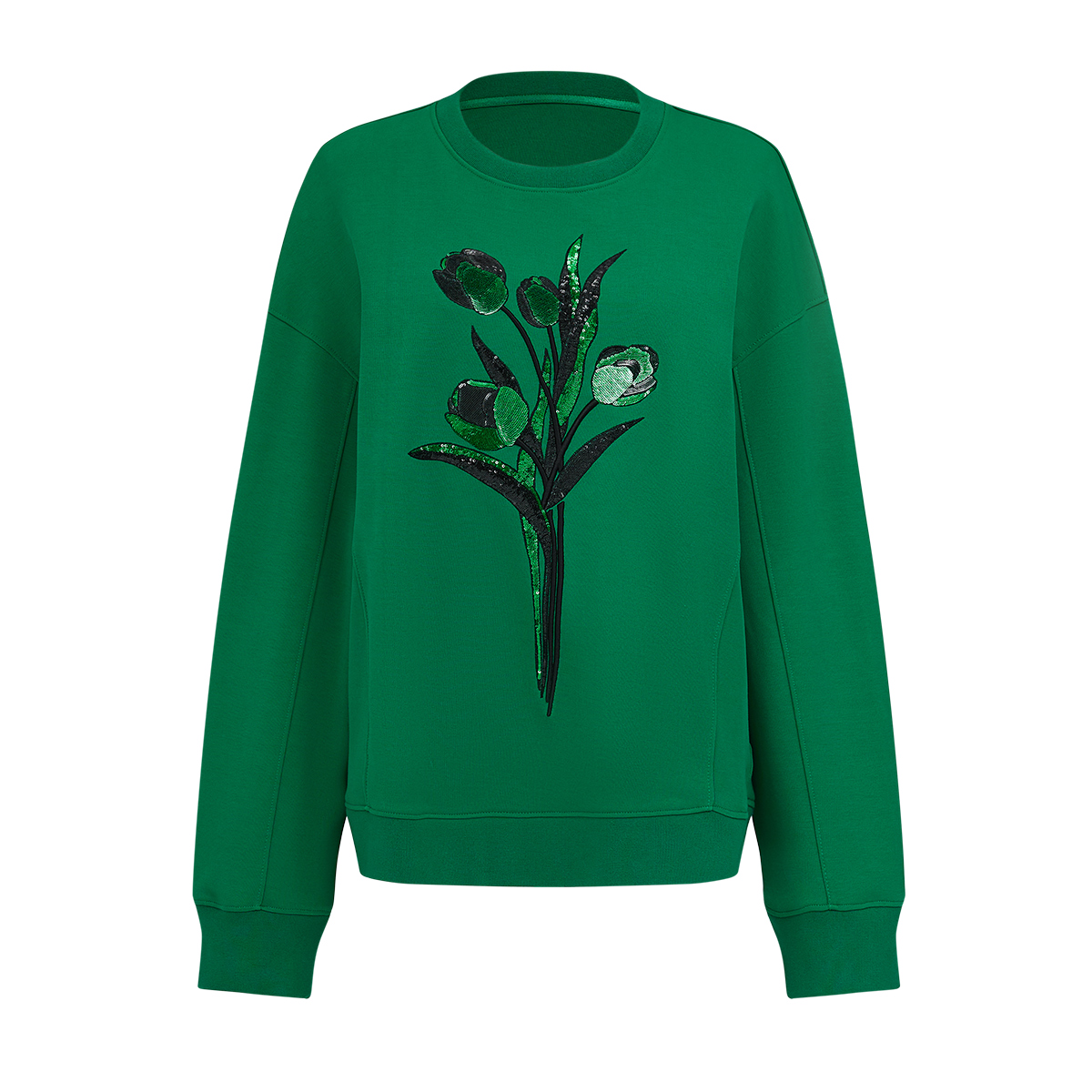 曼德诗郁金香刺绣卫衣2025秋季 棉质简约宽松百搭圆领套头上衣 新款