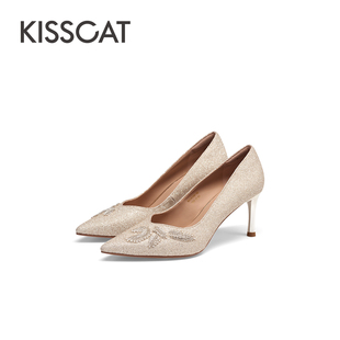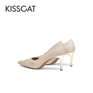 秀禾不累脚浅口单鞋 吉娜同款 女新款 细跟高跟婚鞋 子3YKF预 百丽新款