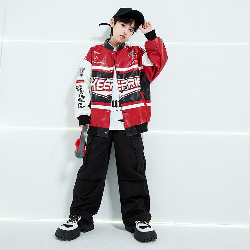 街舞儿童潮服嘻哈机车服皮衣男童套装 演出服走秀女爵士 hiphop童装