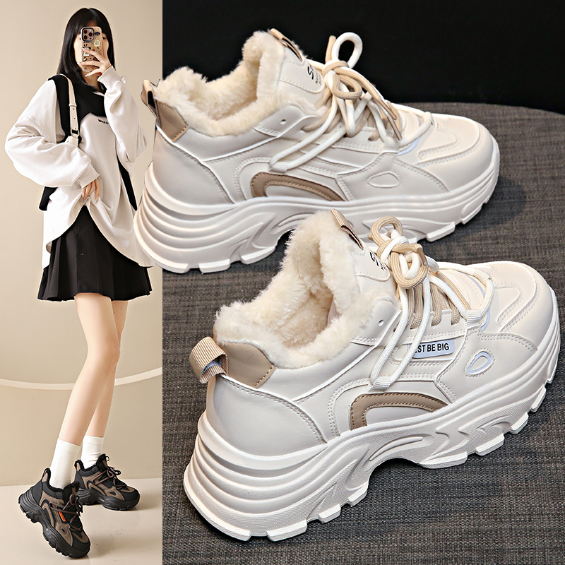 革面保暖厚底时尚 运动鞋 平底鞋 板鞋 子 女款 秋季 女鞋 特步男鞋 休闲鞋