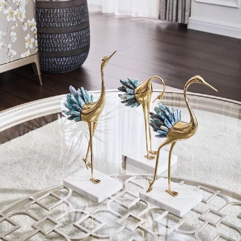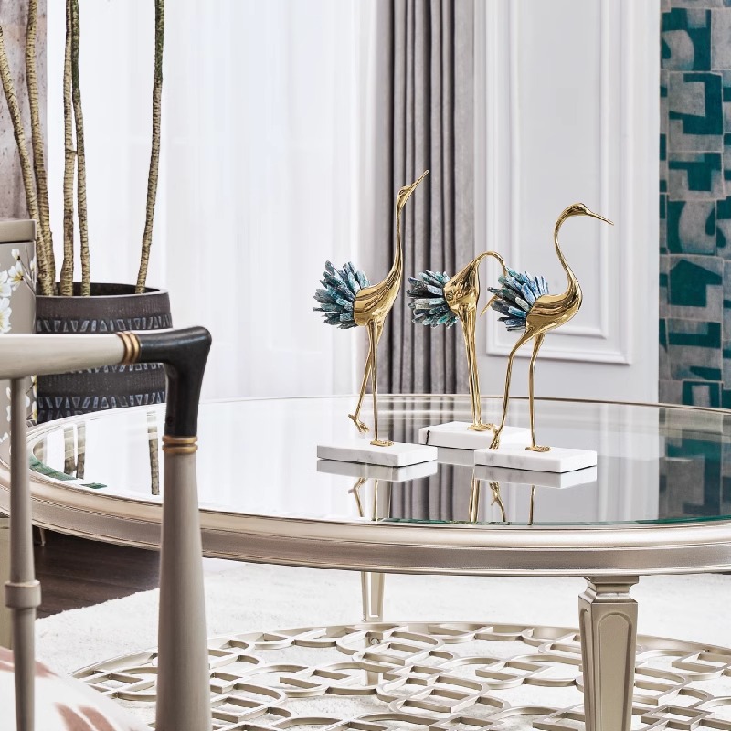 美克美家 饰摆件 翩然蓝色仙鹤摆件轻奢现代玄关客厅装