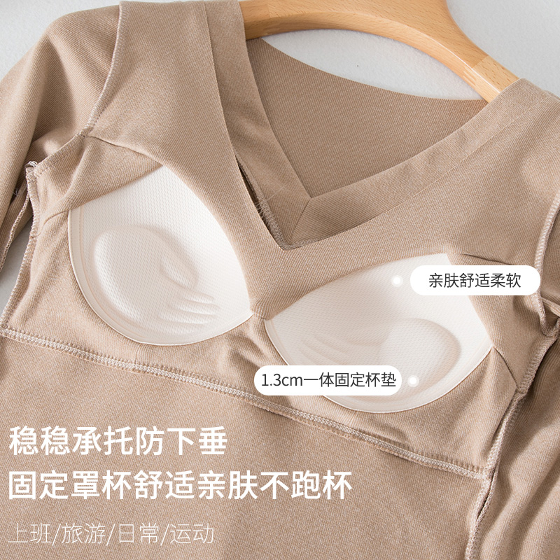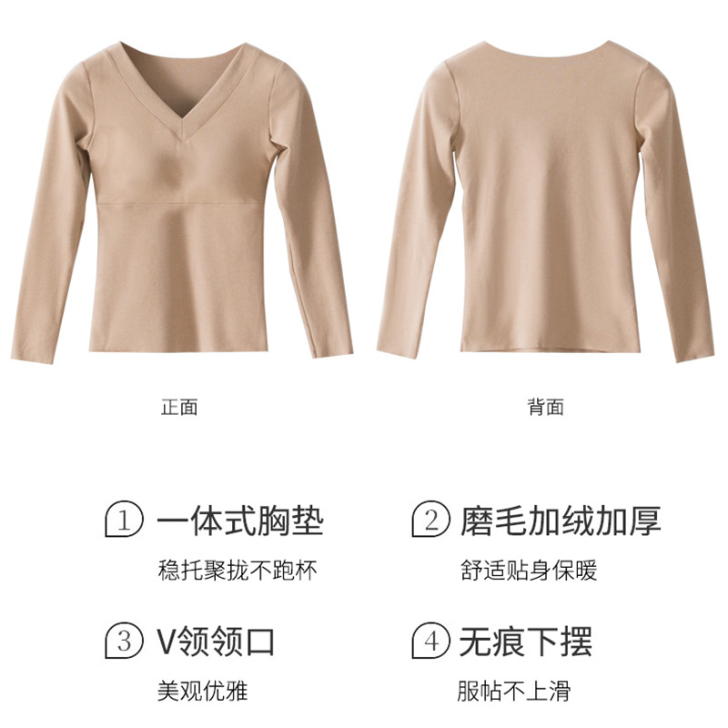 无痕磨毛加厚带胸垫贴身保暖内衣女文胸一体式 秋衣 上衣加绒打底衫