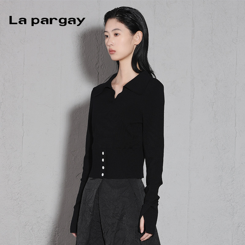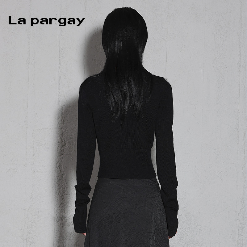 内搭针织衫 修身 2024秋冬新款 黑色个性 显瘦上衣 女式 纳帕佳套头长袖