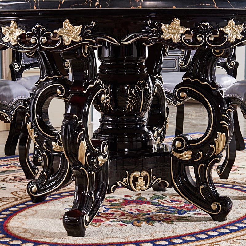 天然大理石意式 极简黑玫瑰高端奢石餐桌椅