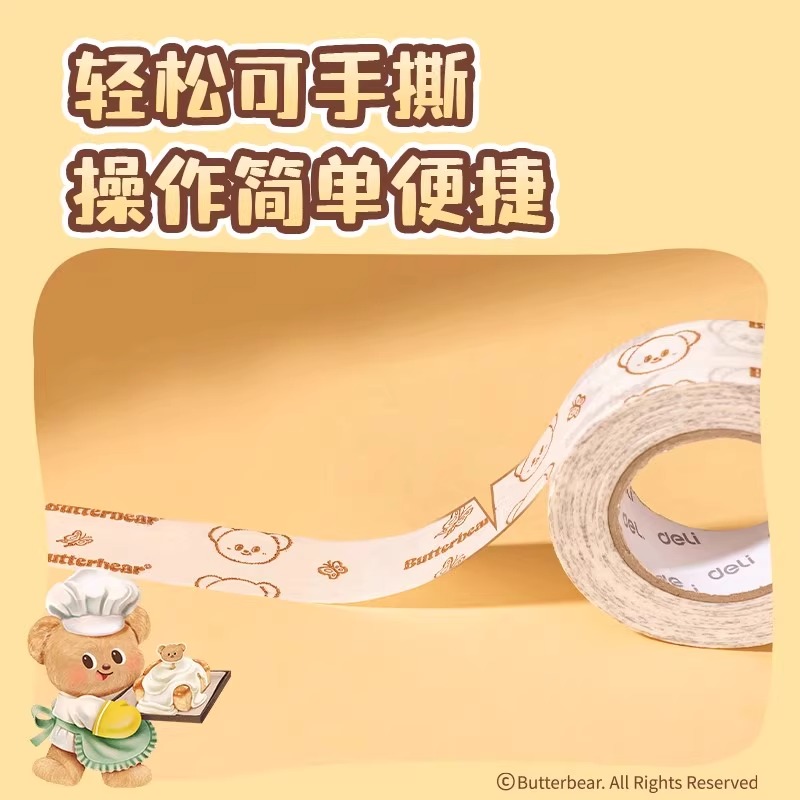 得力美纹纸胶带美术生专用黄油小熊联名学生画画素描绘画遮盖留白汽车喷漆遮蔽手撕可用墙面装 修无痕粘贴耐温