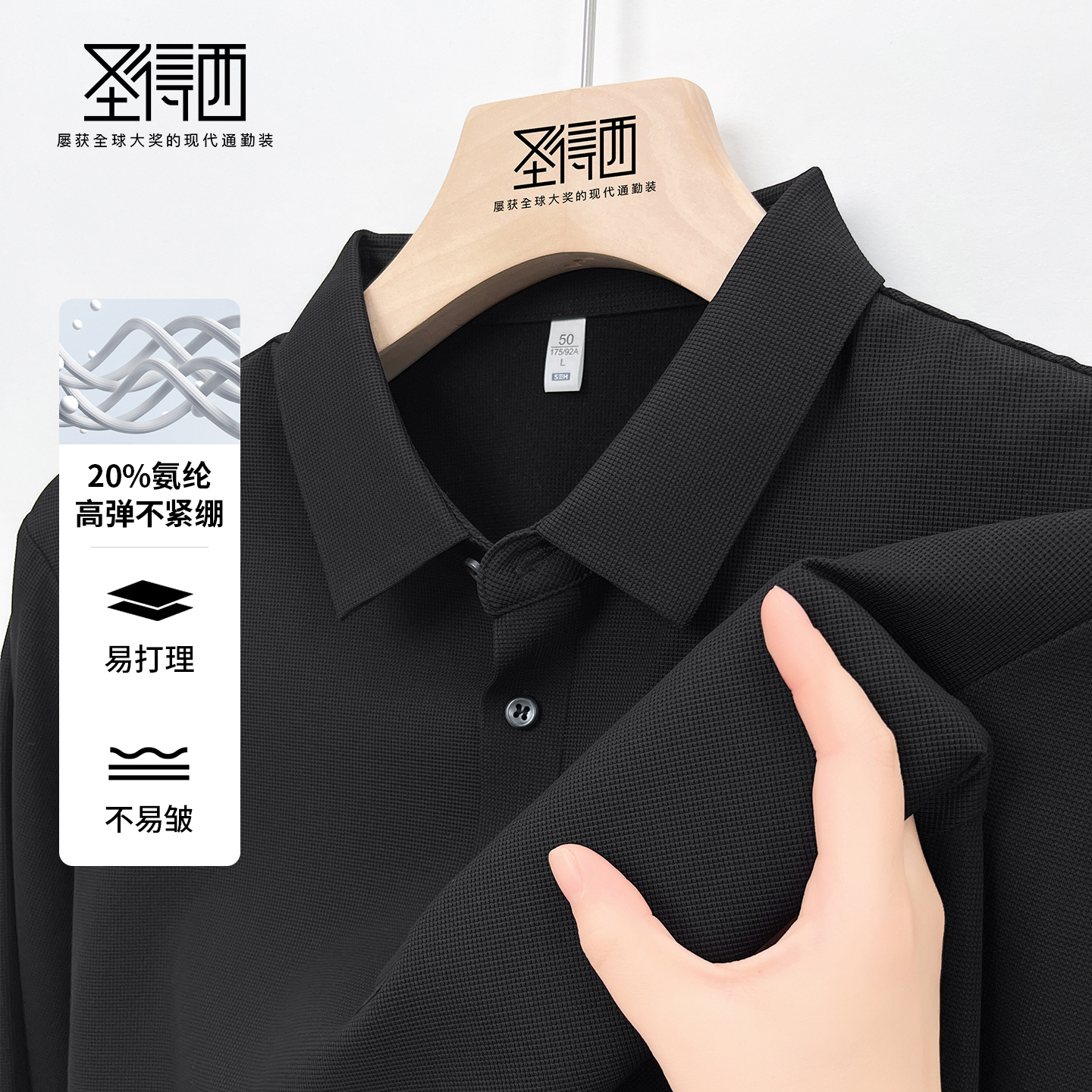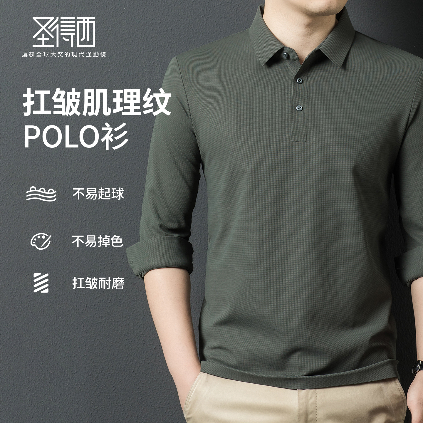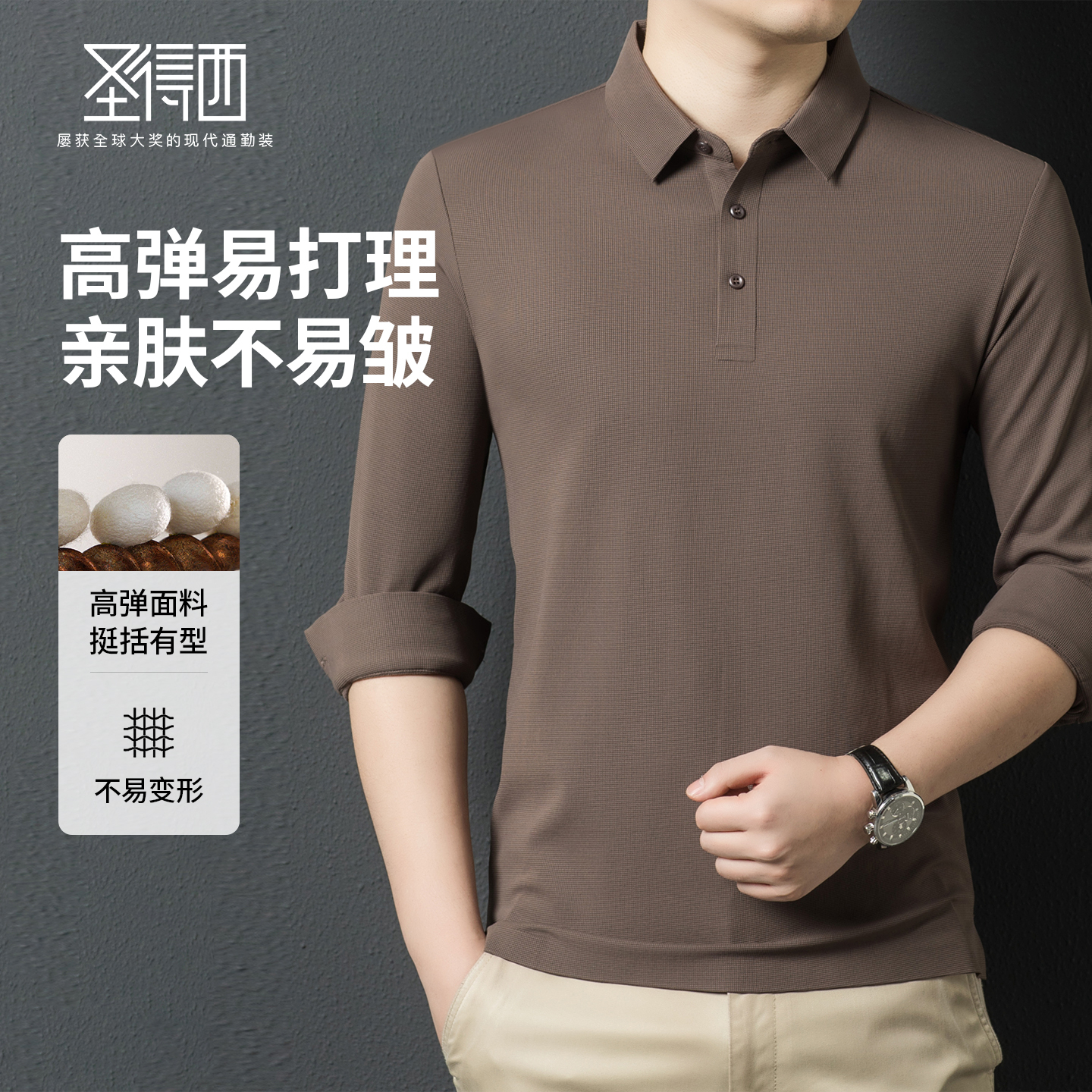 休闲舒适商务通勤纯色长袖 POLO衫 圣得西男士 上衣男 高弹免烫