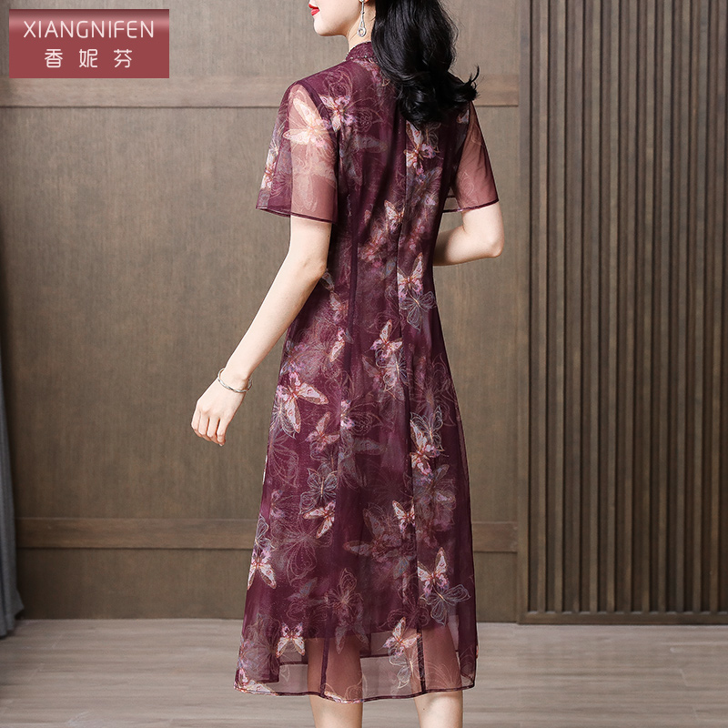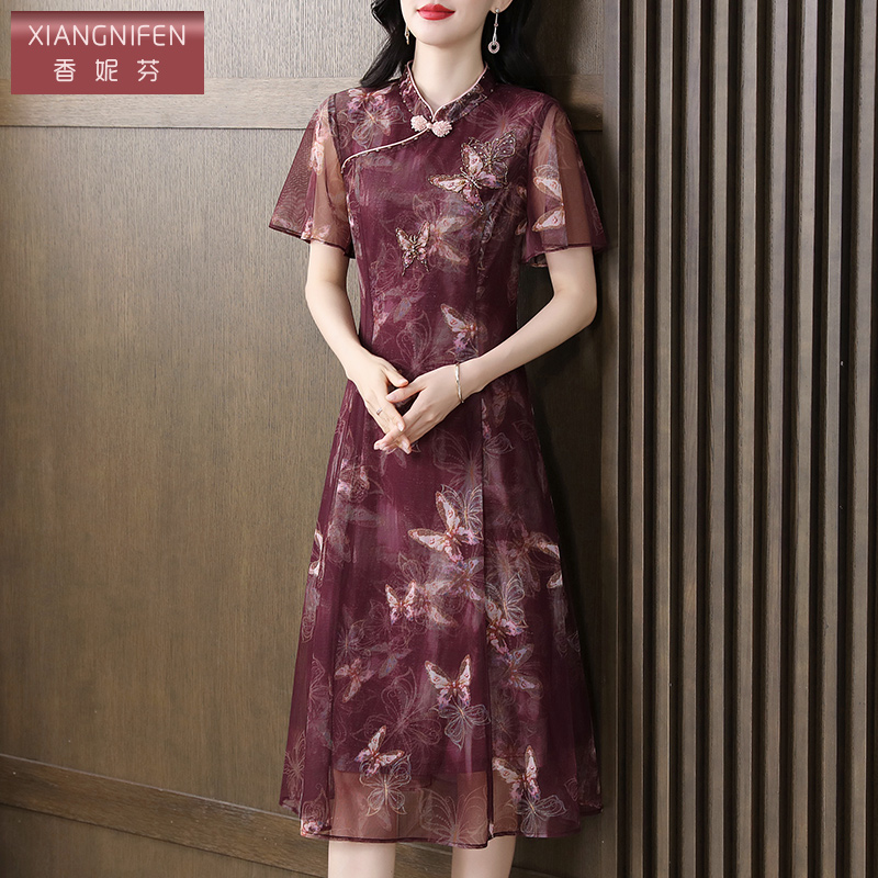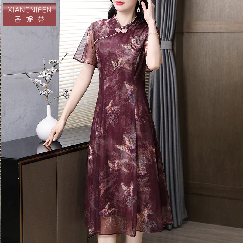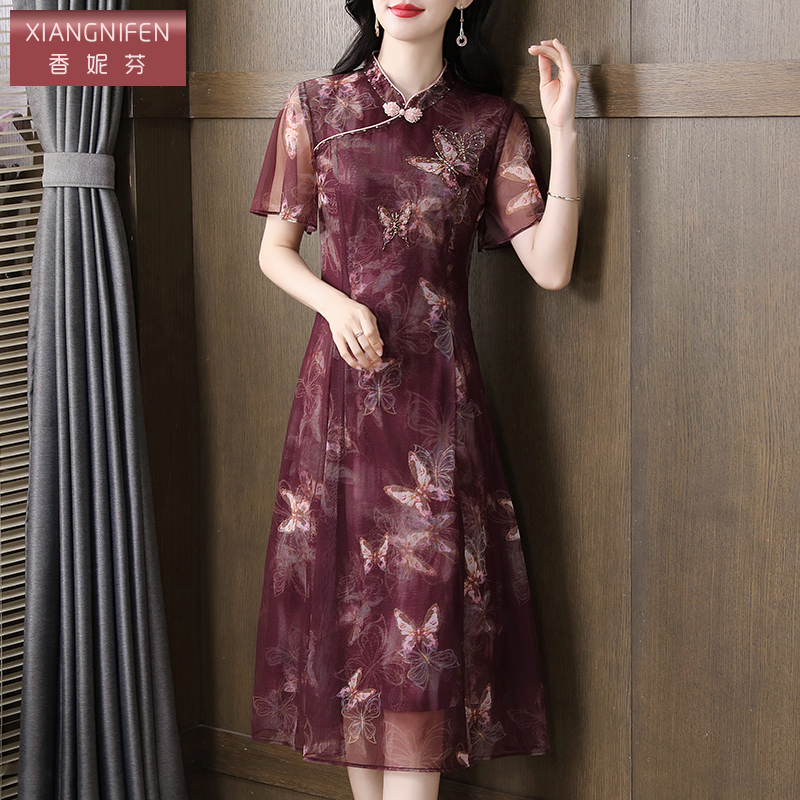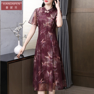 夏季 2025新款 网纱裙子 国风高端中年妈妈气质连衣裙女装 香妮芬中式