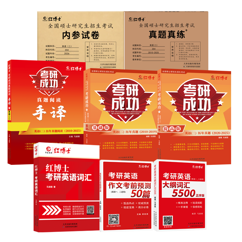 晋远红博士官方备考2026考研成功英语二全套历年真题204词汇英语二阅读作文英语二真题详解版 搭考研政治考研管理学考研数学真题