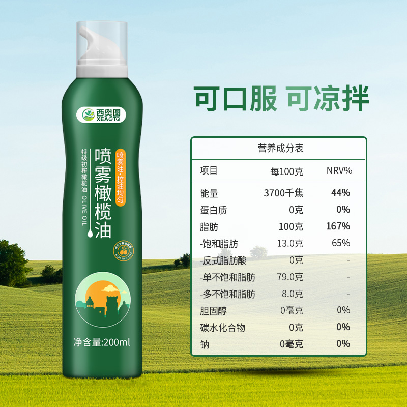 西奥图特级初榨橄榄油喷雾200ml进口低食用喷雾油健身餐卡脂沙拉