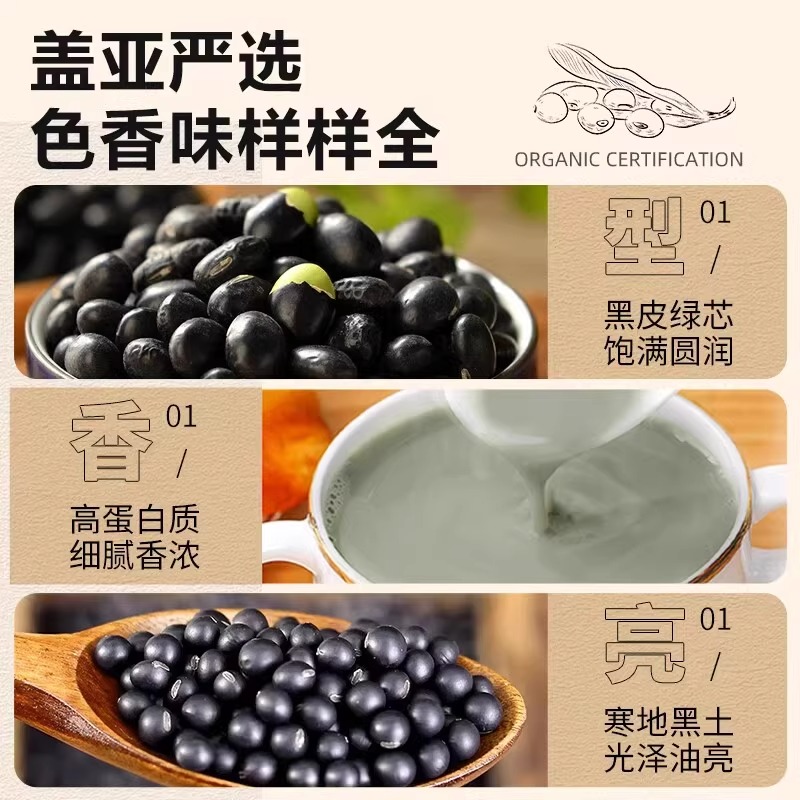 盖亚农场 2024年黑豆新货打豆浆专用可醋泡绿芯黑豆1斤旗舰店