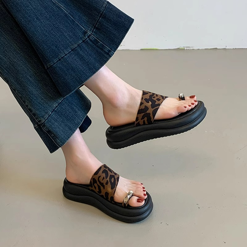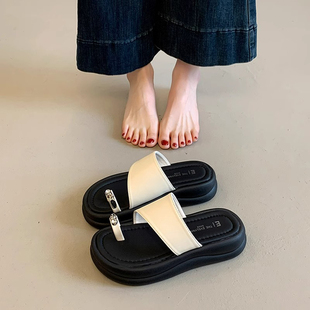 套趾松糕休闲沙滩罗马凉鞋 女夏外穿2025新款 配裙子凉拖鞋 厚底法式