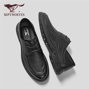内增高休闲软底耐磨鞋 爸爸真皮鞋 镂空 商务正装 真皮牛皮蜻蜓牌男鞋