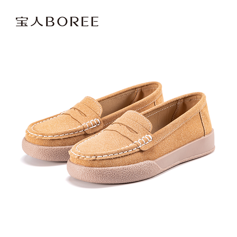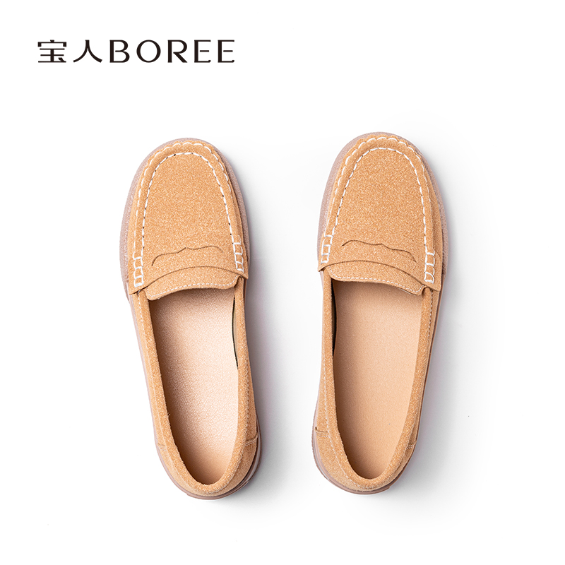 温柔风配裙子豆豆鞋 新款 女2024秋季 星期六真皮平底蝴蝶结浅口单鞋