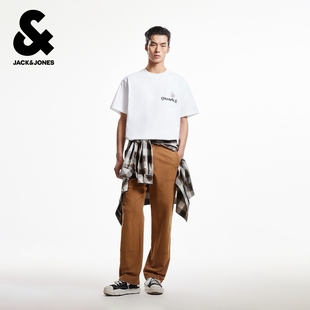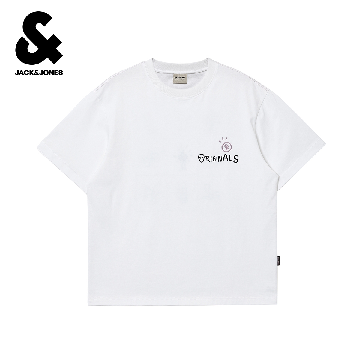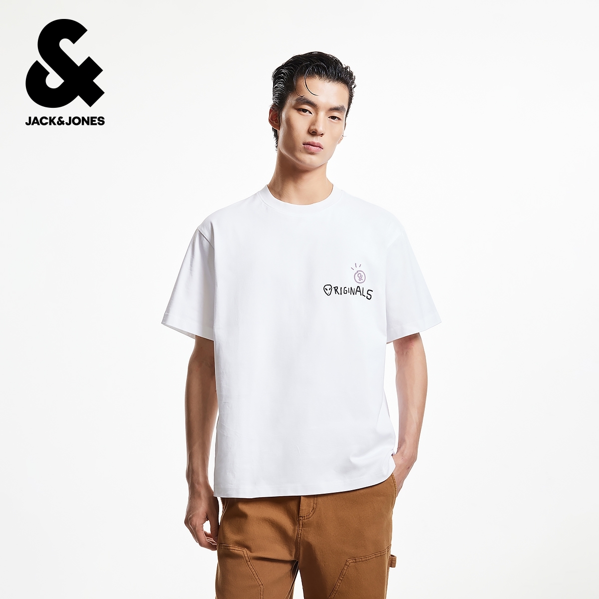 上衣 T恤精致刺绣背部趣味图案宽松短袖 杰克琼斯奥特莱斯男装 夏季