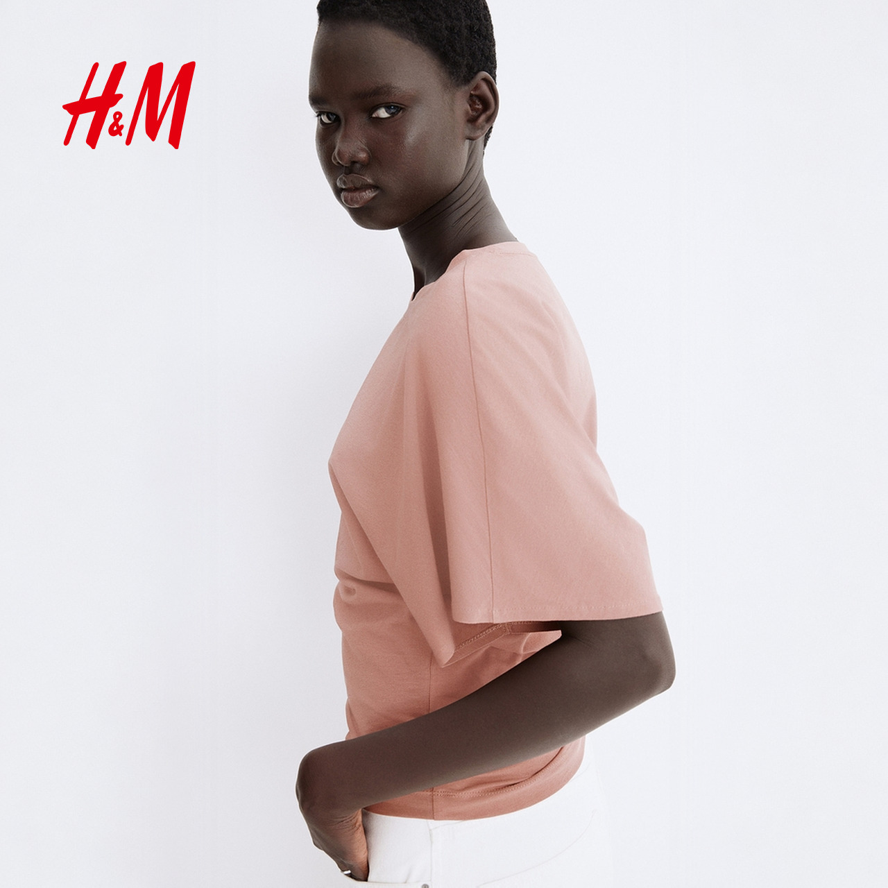 T恤2025夏新款 气质蝴蝶袖 时尚 圆领简约时尚 T恤1294172 短袖 HM女装