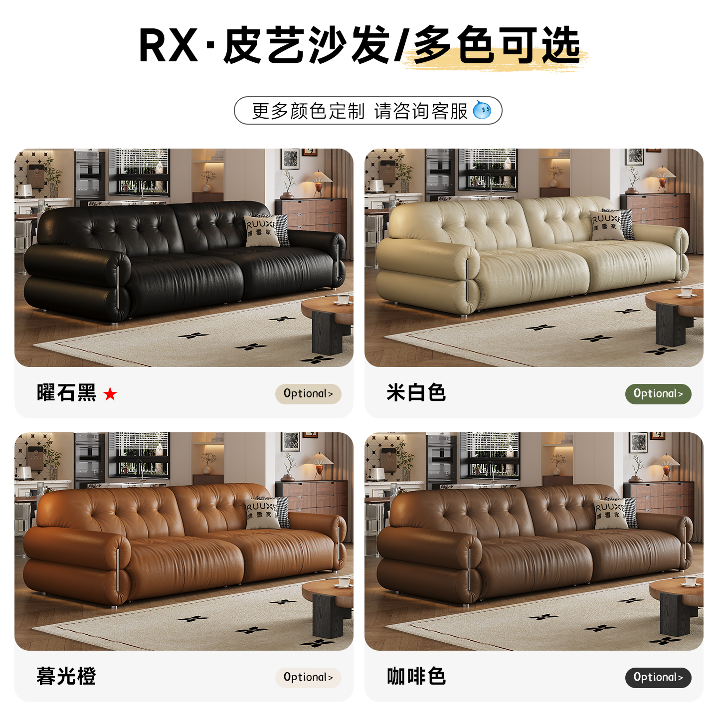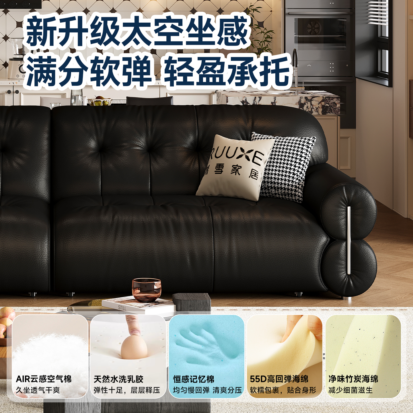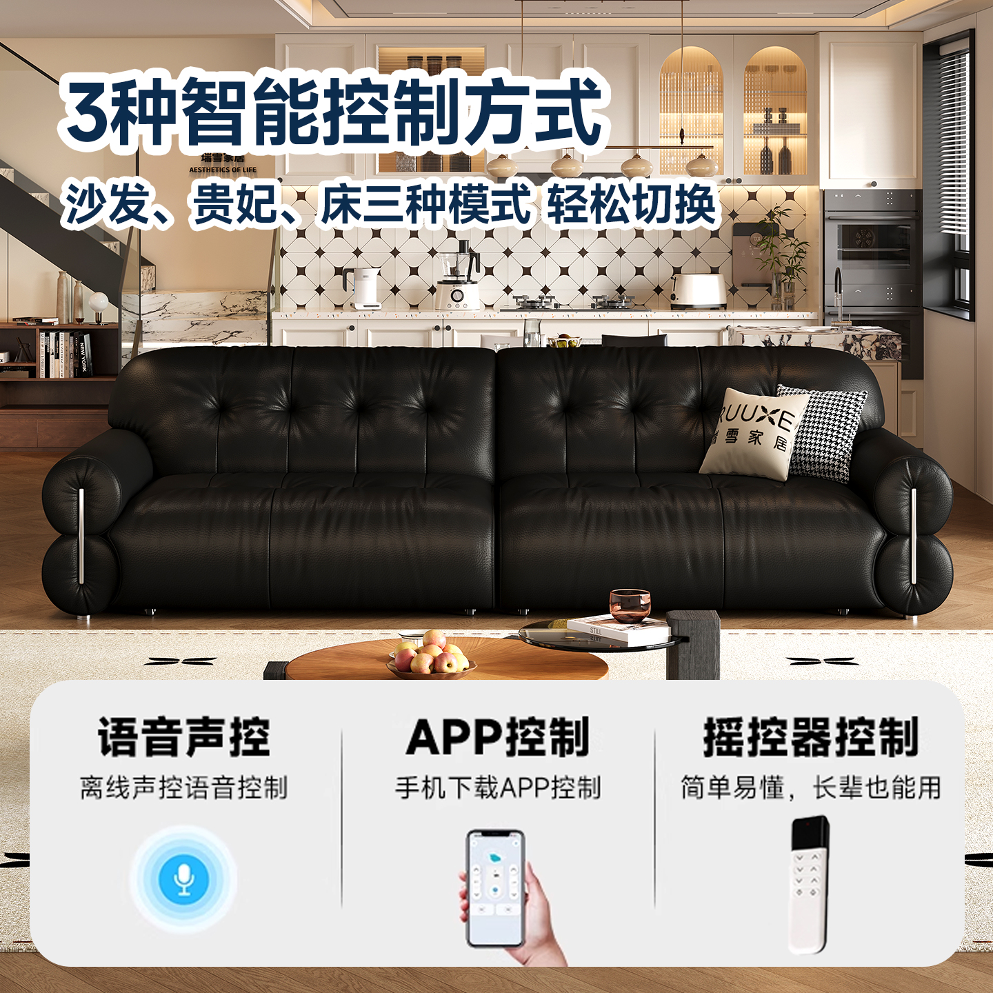 瑞雪黑糖电动功能伸缩真皮设计师直排云朵沙发黑色复古风沙发床