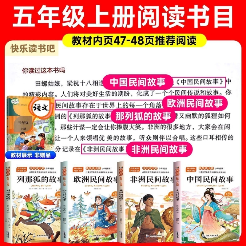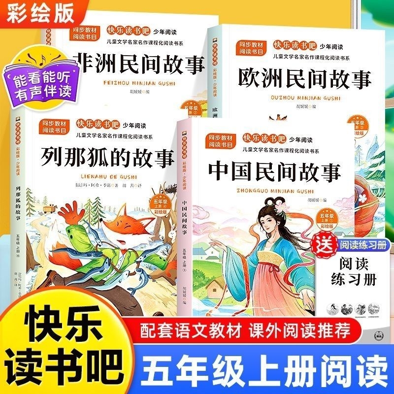 书目童话寓言原著新版 故事上阅读书籍配套人教版 同步 课外书欧洲非洲列那狐 全套4册中国民间故事五年级上册快乐读书吧必读正版