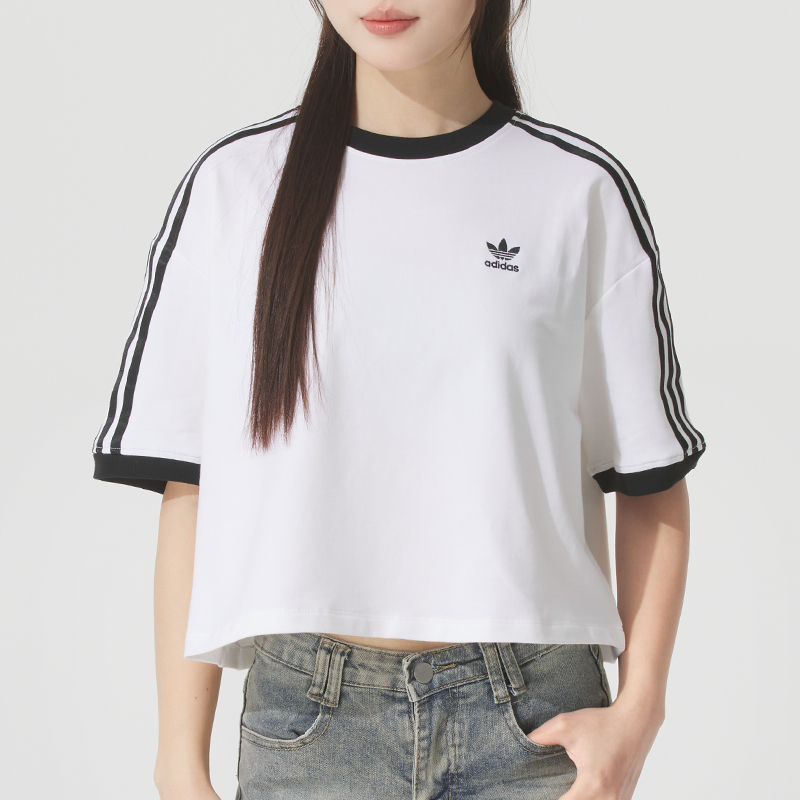 夏季 休闲圆领运动短袖 新款 宽松短款 T恤 半袖 阿迪达斯三叶草女装
