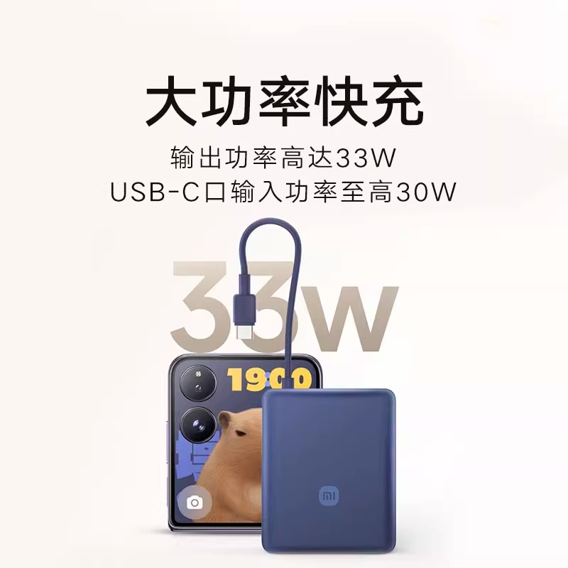 小米自带线充电宝10000 33W双向快充便携小巧超薄迷你超大容量移动电源适用于华为小米苹果15可上飞机
