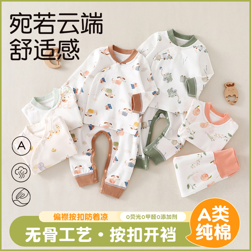 新生儿两件套宝宝纯棉秋衣秋裤 婴儿衣服秋冬季 高腰护肚分体套装