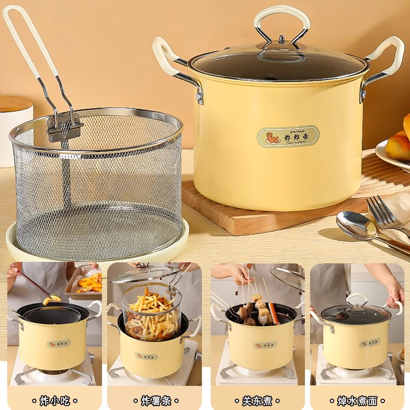 新款 高颜值超大容量油炸锅自带滤网家用多功能炸壶天妇罗专用炸壶