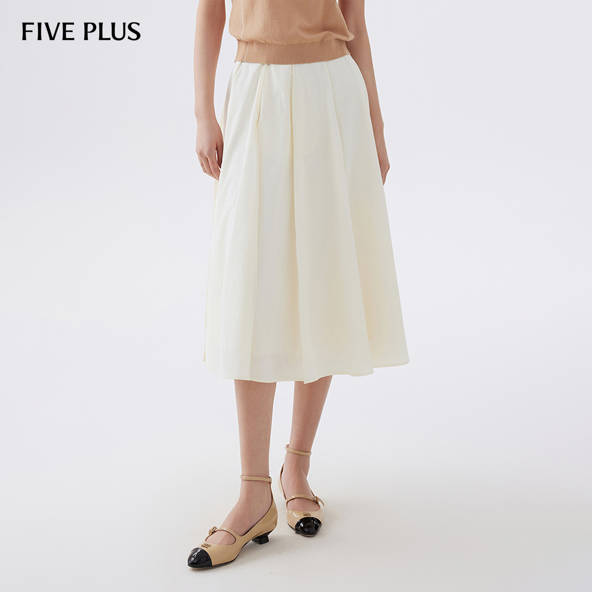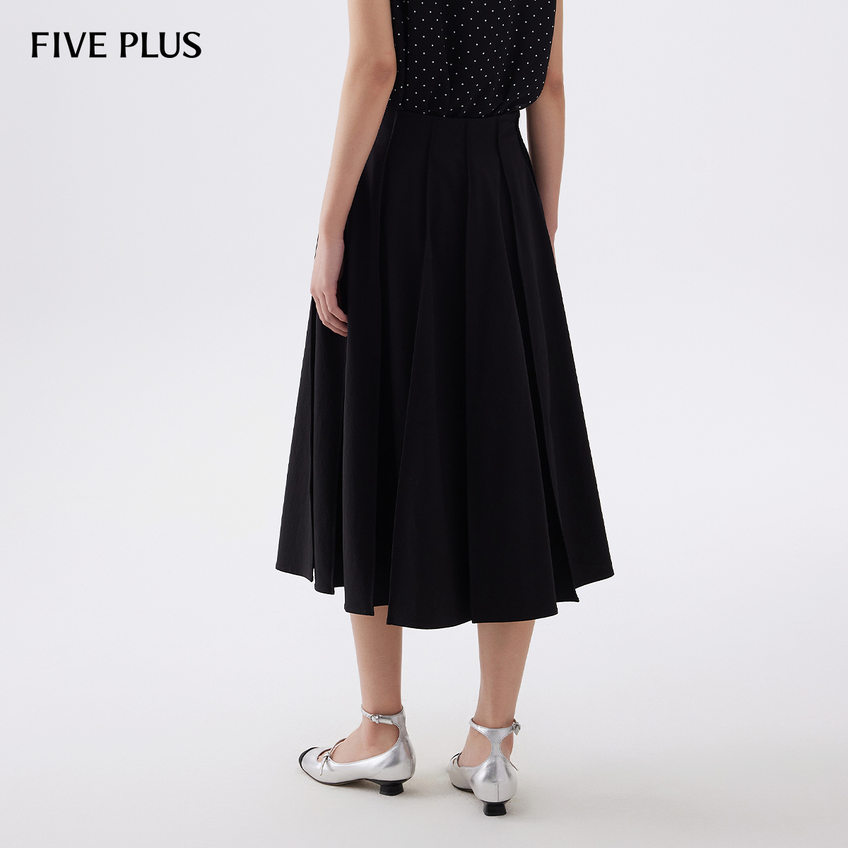 FIVE 伞裙轻盈压褶 PLUS半身裙女裙子高腰A字中长款