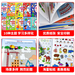 幼儿认知启蒙游戏贴贴画全套10册 3岁全脑开发粘贴纸幼儿园书籍 动手动脑专注力训练儿童贴纸书3到6岁早教启蒙益智游戏书宝宝绘本0