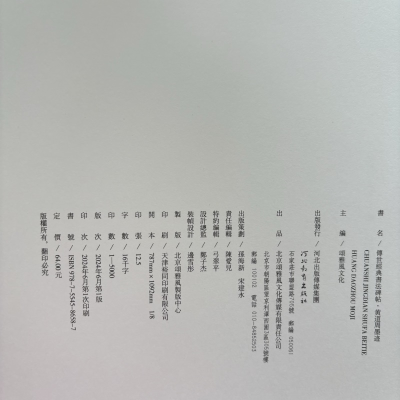 14年老店 河北教育出版 传世经典 黄道周墨迹 社 书法碑帖
