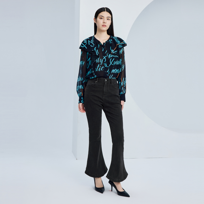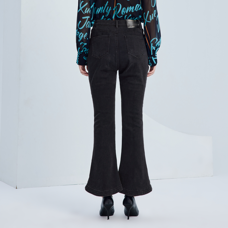时尚 显瘦喇叭裤 秋季 通勤简约修身 女 新款 XG雪歌黑色水洗微弹牛仔裤