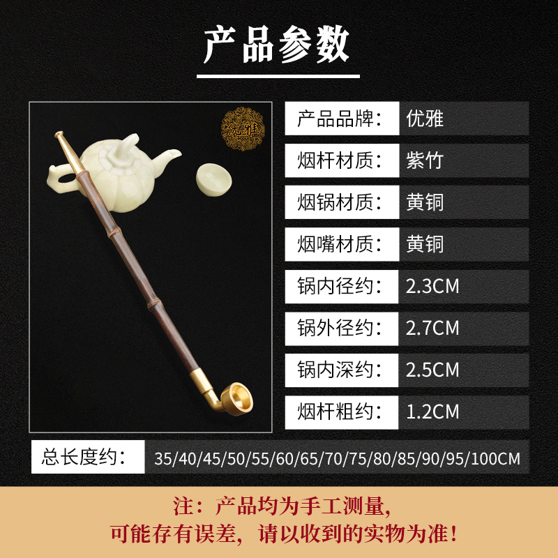 优雅老式 长度可选 手工紫竹杆加长杆黄铜烟嘴黄铜烟锅大锅烟斗多款