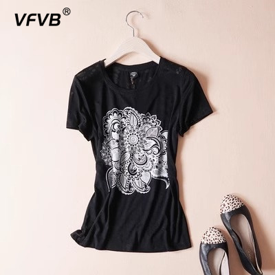 休闲短袖 T恤大码 t恤女2024夏季 超薄透气烫钻复古印花短袖 新款 时尚