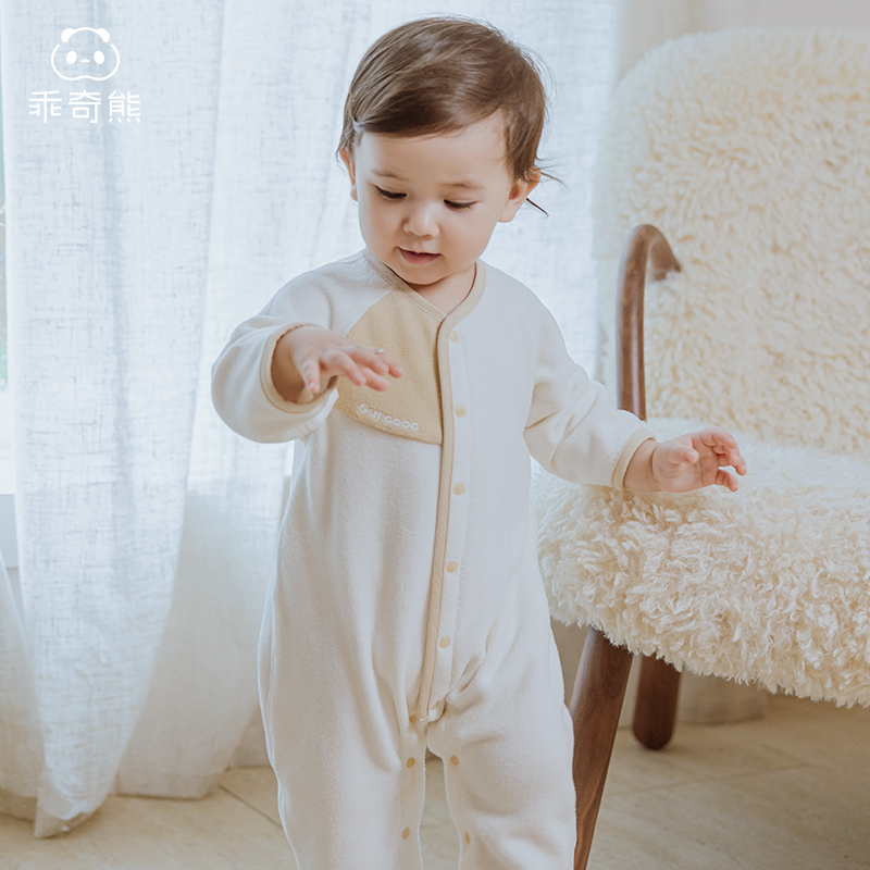 保暖宝宝居家服无骨哈衣爬爬服抗静电 婴儿连体衣秋冬季 摇粒绒