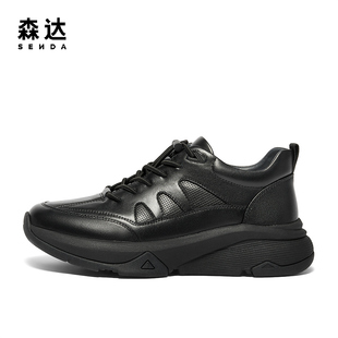 户外运动黑色厚底真皮休闲鞋 春秋商场同款 K3P01DM4 男款 森达健步鞋