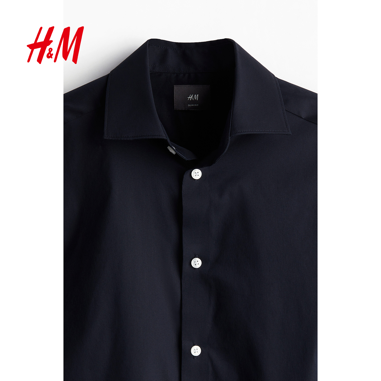 商务绅士翻领合身弹力衬衣工装 衬衫 0841808 秋季 HM男装