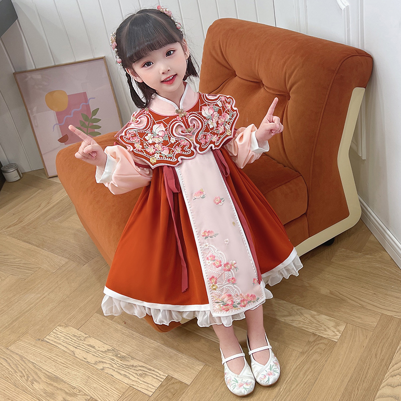 汉服女童春夏周岁女宝宝礼服儿童唐装 连衣裙古风明制云肩公主