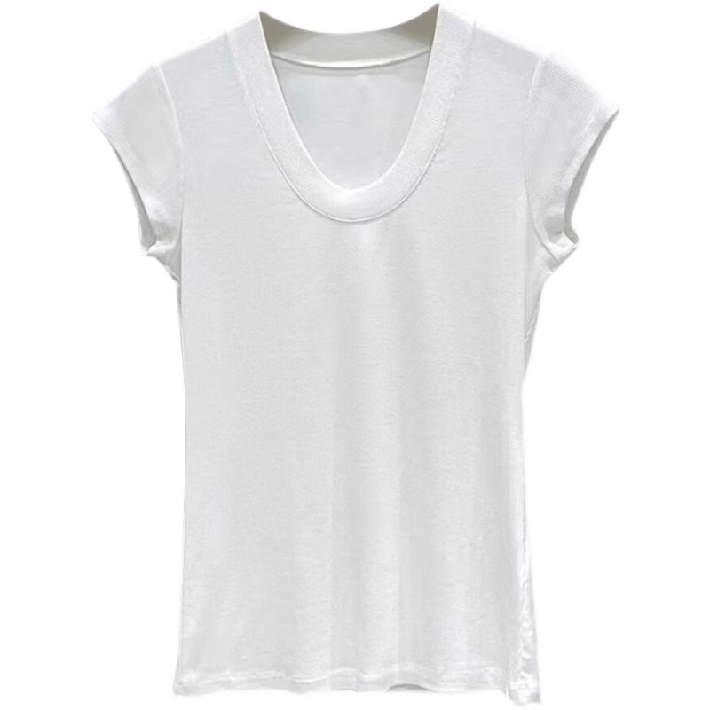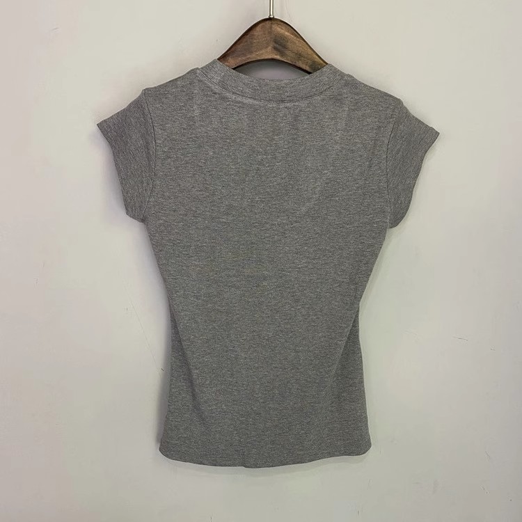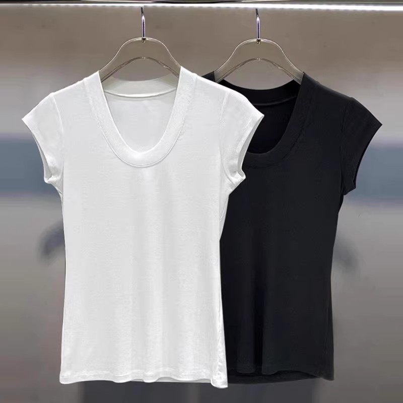 欧货25夏季 百搭短袖 新款 上衣修身 T恤女 圆领螺纹棉质纯色短款 美式