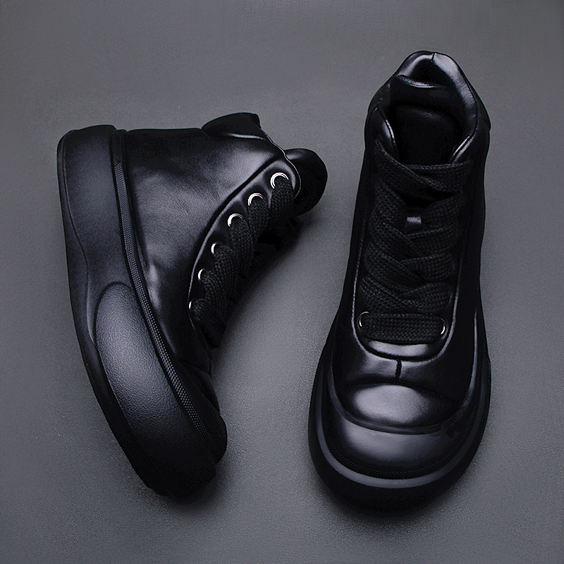 中帮机车靴子男生增高皮靴 2025新款 马丁靴男款 英伦风黑色高帮皮鞋