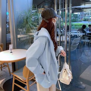 加绒加厚上衣 初中生长袖 秋冬黑色拉链连帽学生卫衣女2025新款 开衫