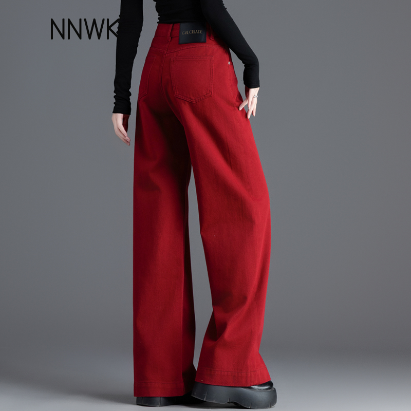 喇叭牛仔裤 子直筒裤 女2025新款 高腰宽松裤 春秋季 安可拉红色阔腿裤