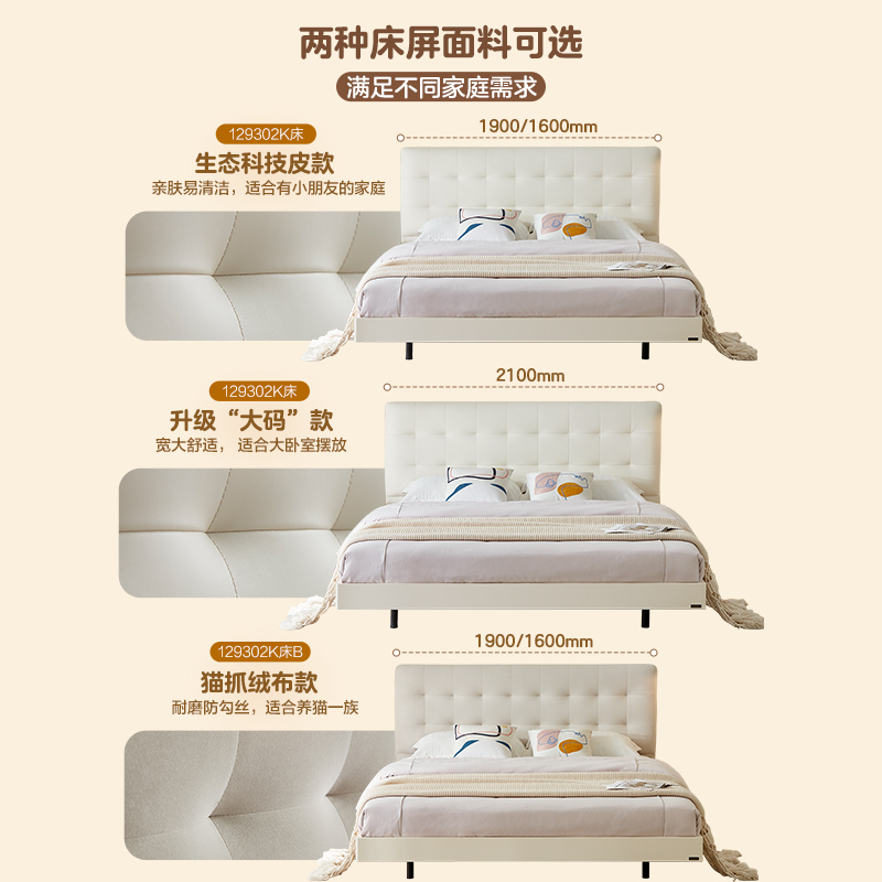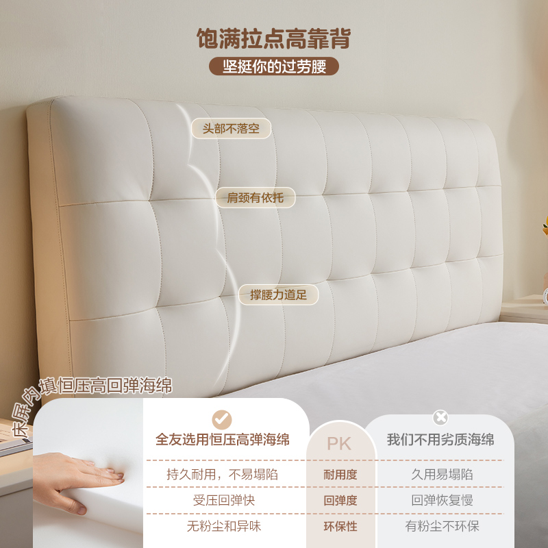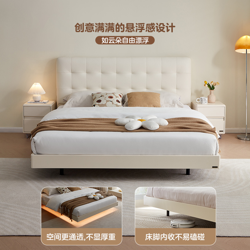 政府补贴全友家居现代简约悬浮皮床法式 奶油风主卧床1米8泡芙软床