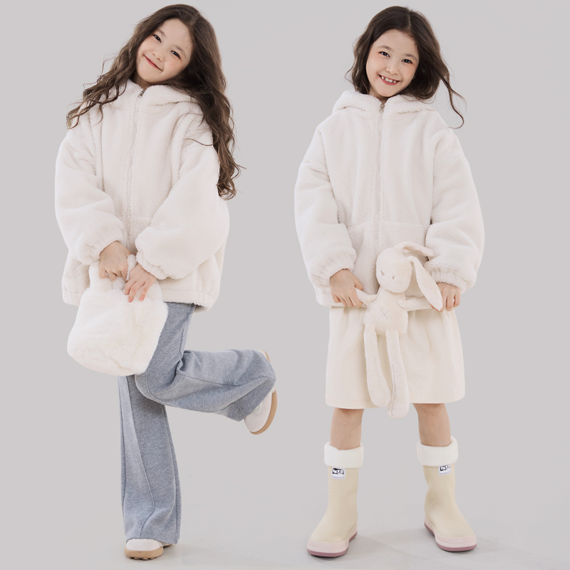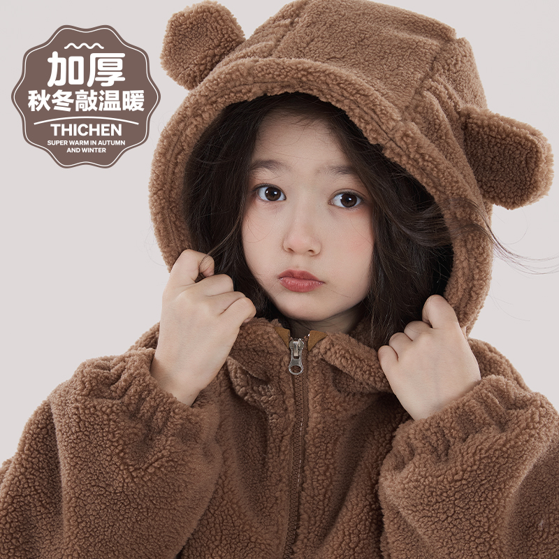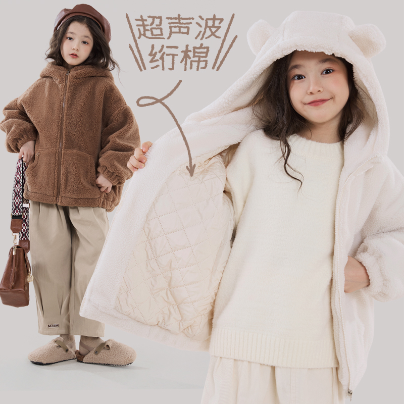 反季 儿童棉服羊羔绒亲子加厚加绒大衣中大童 清仓女童外套秋冬新款