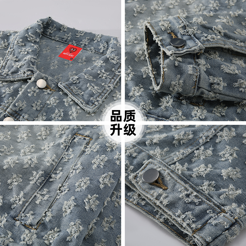 查尔斯桃心美式 外套 重工水洗复古提花牛仔夹克男女2025春秋情侣装