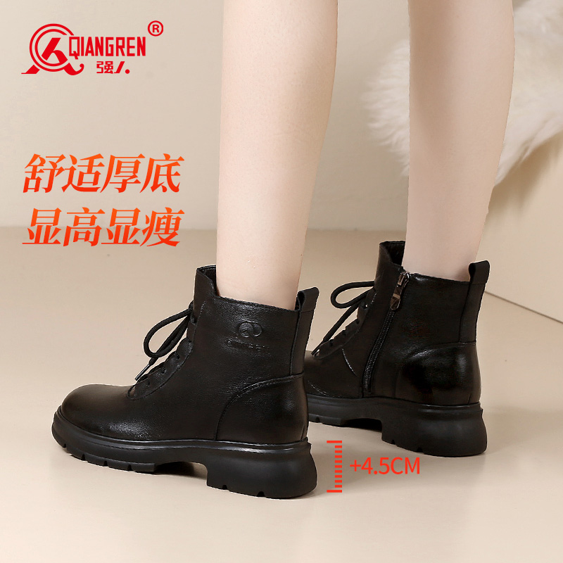 强人3515冬季 加绒棉靴防滑中老年靴子 女短靴羊毛真皮保暖妈妈棉鞋