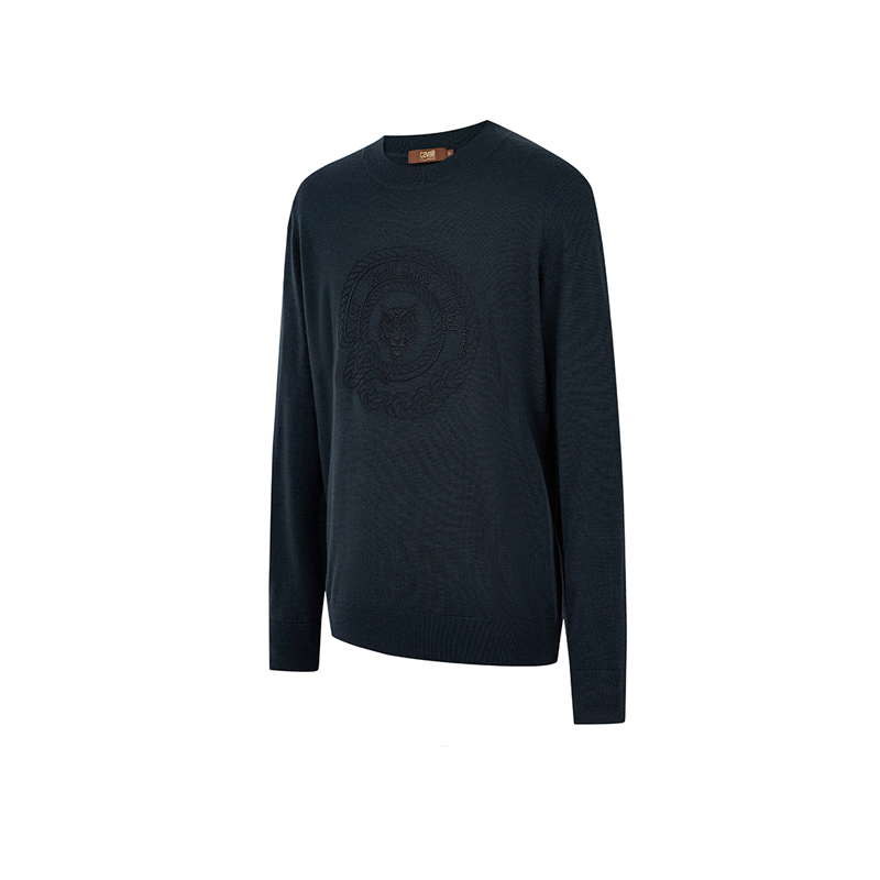 CavalliClass卡沃利刺绣虎头含羊毛针织衫 男logo提花休闲百搭毛衣